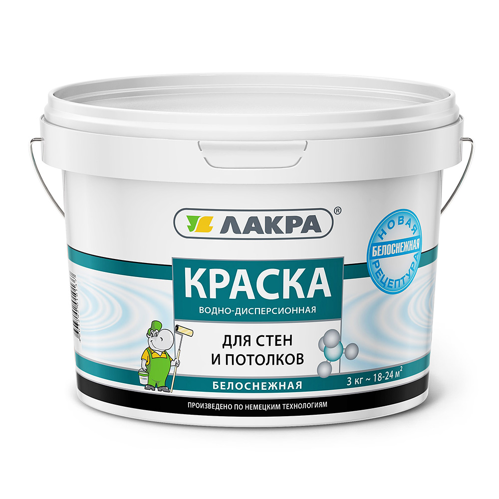 ЛАКРА Краска для стен и потолков белоснежная 3 кг